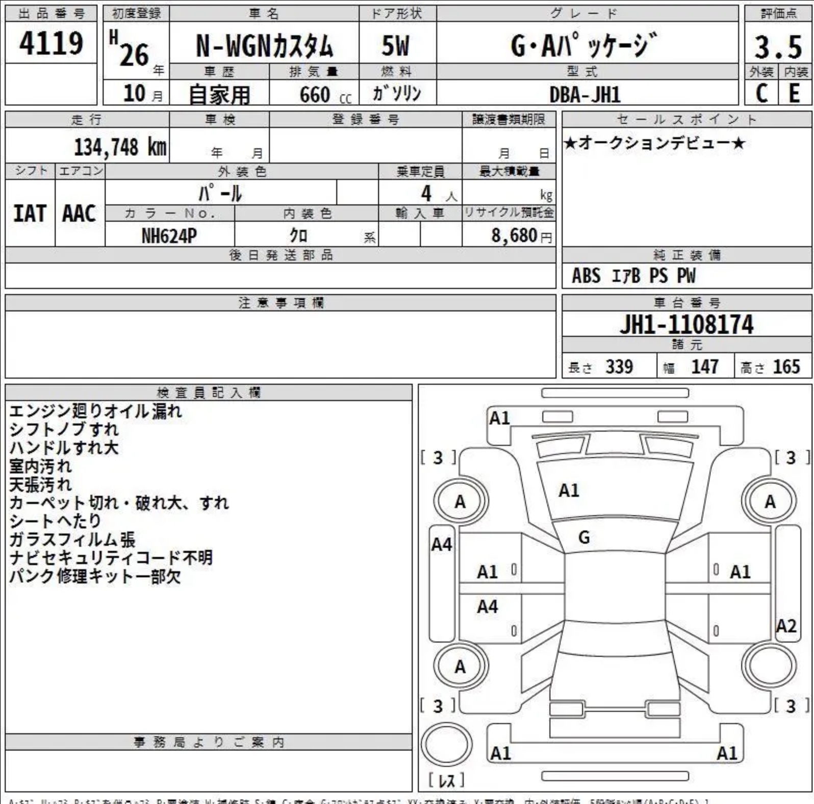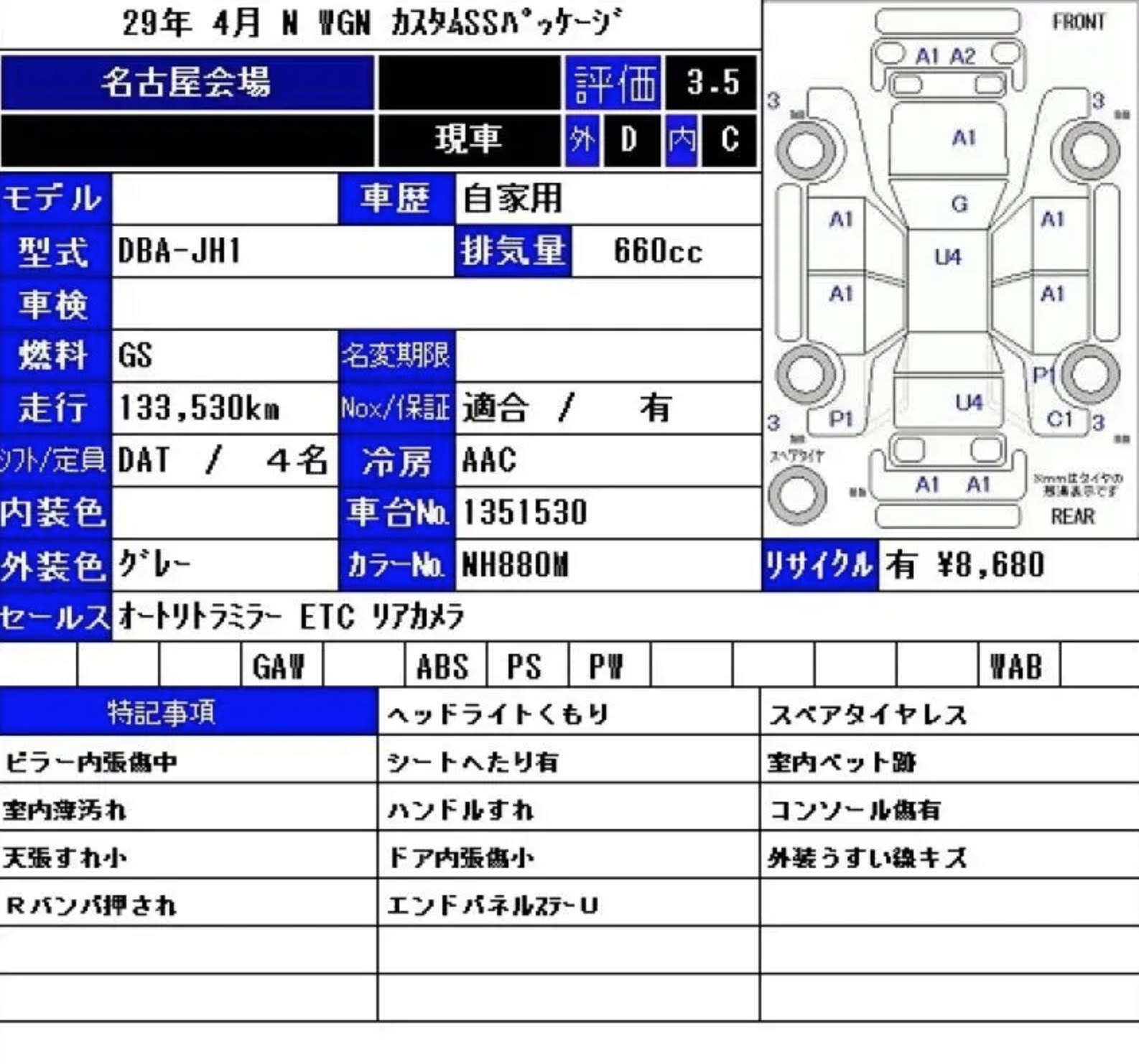 Аукцион HONDA AA NAGOYA лот №55260 от 16.02.2026, 3.5 балла
